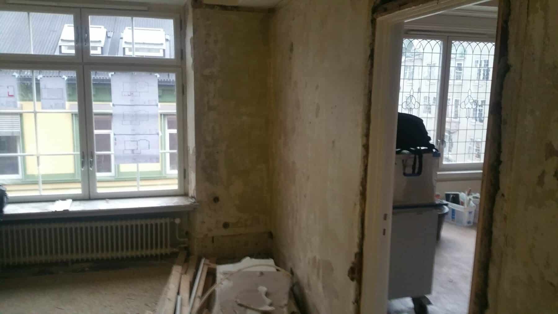 - Tapetfjerning: Om gammel tapet sitter godt eller må dampes/skrapes ned.